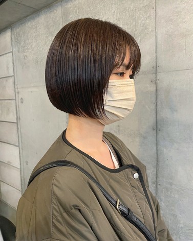 ミニボブ × フォレストブラウン サイドの長さは変えずに 後ろを切ってミニボブにチェンジ⭐︎ 首周りスッキリでマフラーを巻いても 邪魔になりません! まとまりやすいから扱いも簡単♪
