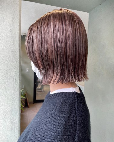 切りっぱなしボブ×ハイライトベージュカラー