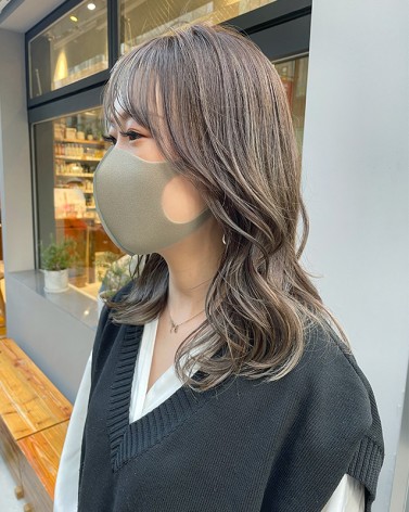 ミディアムレイヤー×スモーキーベージュ 全体に細かくハイライトが入ってるので 透明感も束感もいい感じ♪ ハイライトは動きの出やすい レイヤースタイルとの相性もGood!です◎