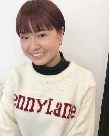 *耳かけショートスタイル* 前髪とサイドの生え際をきれいに下ろした状態で可愛くカット^^ 耳にかけてから合わせてカットしていきます。 カラーはピンクバイオレットでツヤさらです!